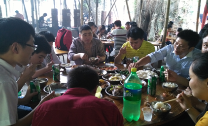 中午,自助野炊粉墨上場,平時裝機(jī)調(diào)試,玩電腦的手,此時又再次各顯神通,燒火的燒火,洗菜的洗菜,各種食材在通發(fā)各路“神仙”的擺弄下,變成一桌桌美味佳肴!香氣四溢,果然集體力量大啊!