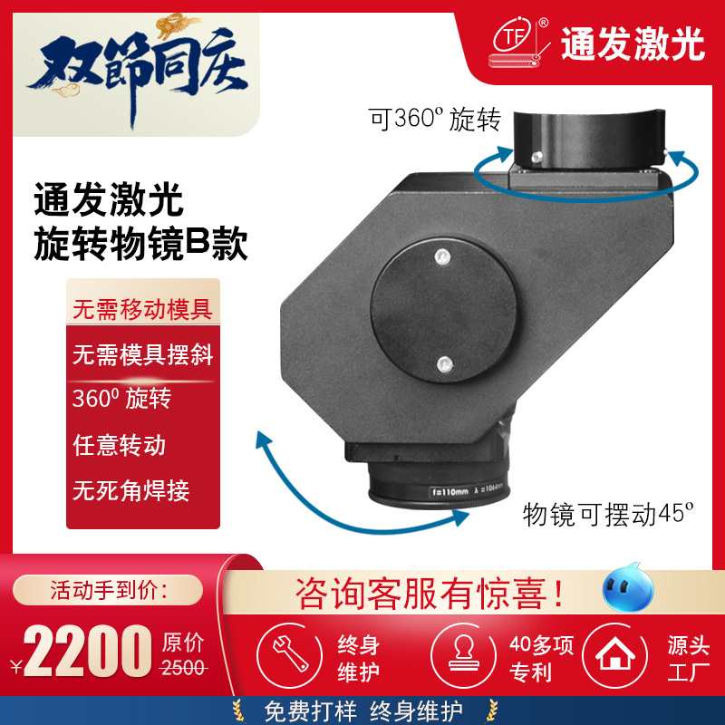 旋轉(zhuǎn)物鏡B款旋轉(zhuǎn)物鏡A款,無需移動模具擺斜,360度旋轉(zhuǎn),任意轉(zhuǎn)動,無死角焊接。