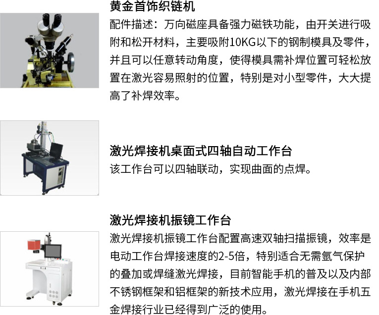 通發激光研發針對配合黃金織鏈機、K金制鏈機、首飾織鏈機、項鏈織鏈機的TFL-40PF自動光纖激光焊接機,焊接機采用能量反饋技術,光點穩定,能量強勁,便與安裝,實現一環一焊的功能,確保金鏈的耐拉強度,可以廣泛應用在點焊及柔性加工需求行業等焊接。本激光焊機實現了風冷一體的小型化結構。適用于各種生產場所。