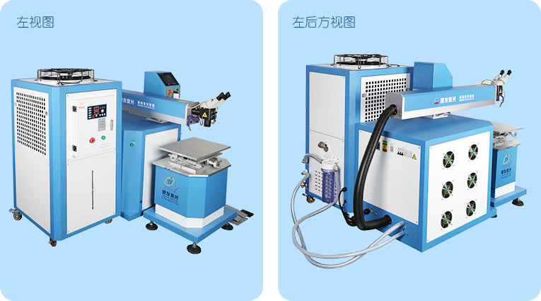 TFL-400Ⅲ型模具激光焊機是通發激光公司自主研發的一款大功率激光焊接機,采用通發自主研發的二代精密雙燈電源為燈泵浦驅動電源,配置觸摸屏,操作更方便。主機具備激光頭手搖升降與工作臺按鈕電動升降實現焊接不同厚度模具的激光焊加工。本款機型更適用于各類大功率、大面積激光修補的模具。由于激光功率大,同時可激光焊接鈹銅模具,鋁材模具或鋁材零件。在大面積激光修補模具時,可以使用更粗的焊絲,激光焊接效率大幅提升。